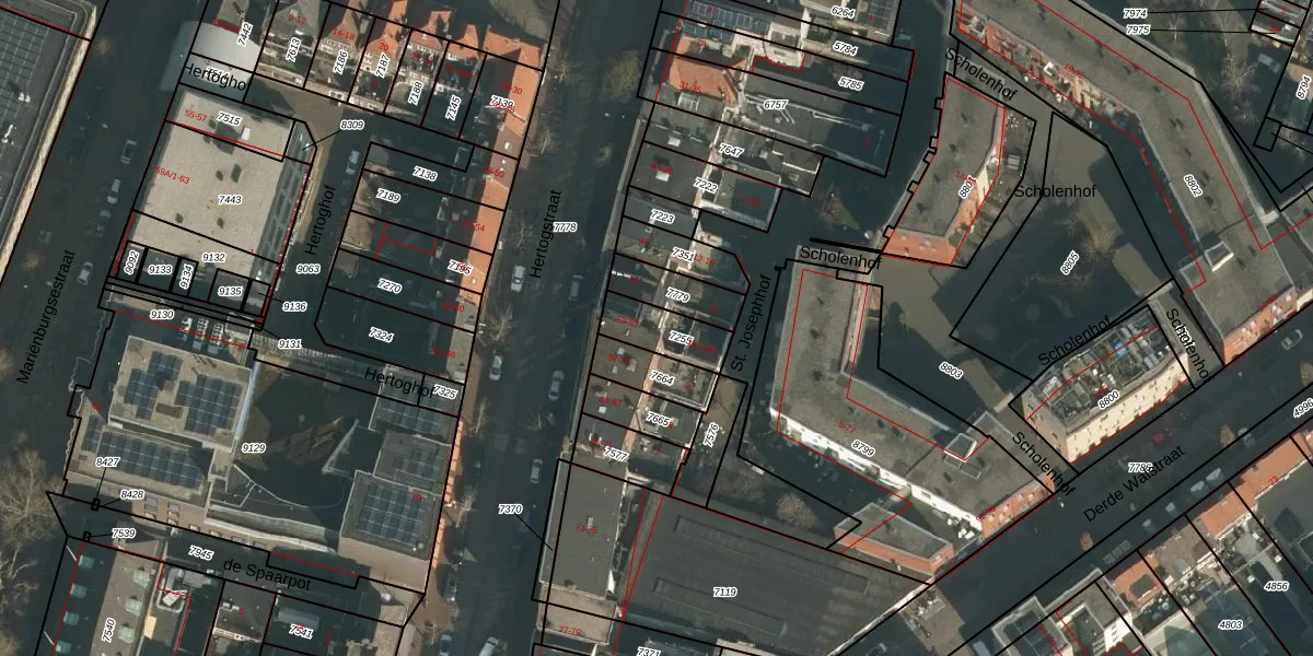 Hertogstraat 53-B is gelegen op kadastraal perceel NMG00C7255. Deze kadastrale aanduiding is uniek en wordt gebruikt door het Kadaster om eigendomsrechten en andere zakelijke rechten vast te leggen. Het perceel maakt onderdeel uit van de kadastrale gemeente Nijmegen.