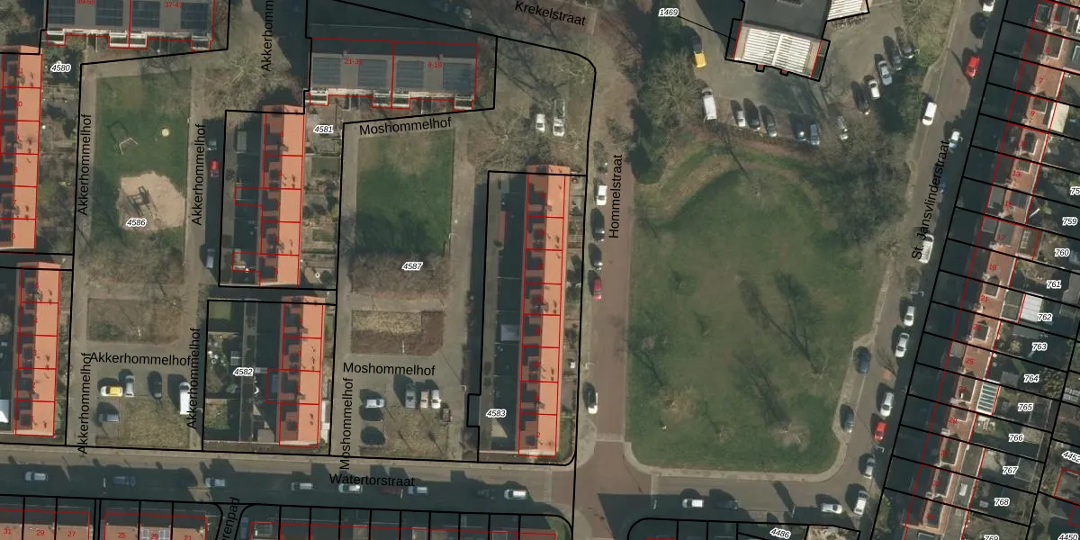 Hommelstraat 16 is gelegen op kadastraal perceel HTT02L4583. Deze kadastrale aanduiding is uniek en wordt gebruikt door het Kadaster om eigendomsrechten en andere zakelijke rechten vast te leggen. Het perceel maakt onderdeel uit van de kadastrale gemeente Hatert.