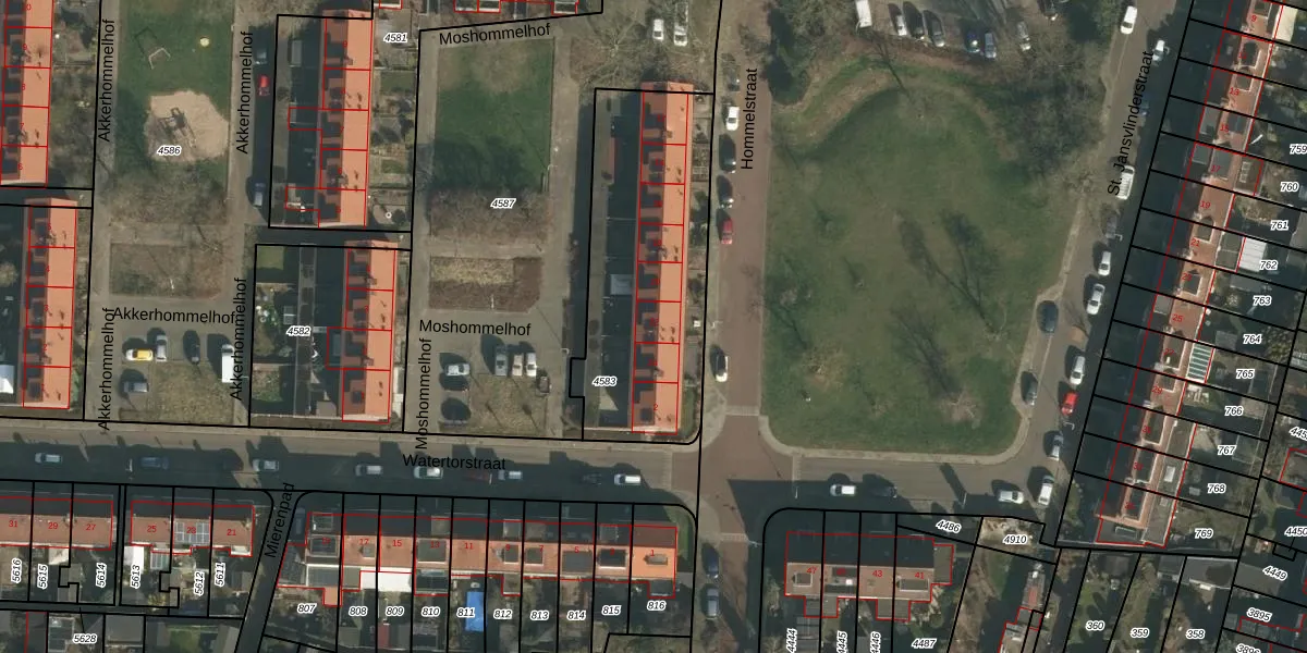 Het perceel waarop Hommelstraat 22 staat heeft een oppervlakte van 985 m². Dit is een groot perceel. De perceeloppervlakte wordt geregistreerd door het Kadaster. Gedetailleerde informatie over de maten van dit perceel kunt u vinden in het rapport Kadastrale kaart met maatvoering van Hommelstraat 22.