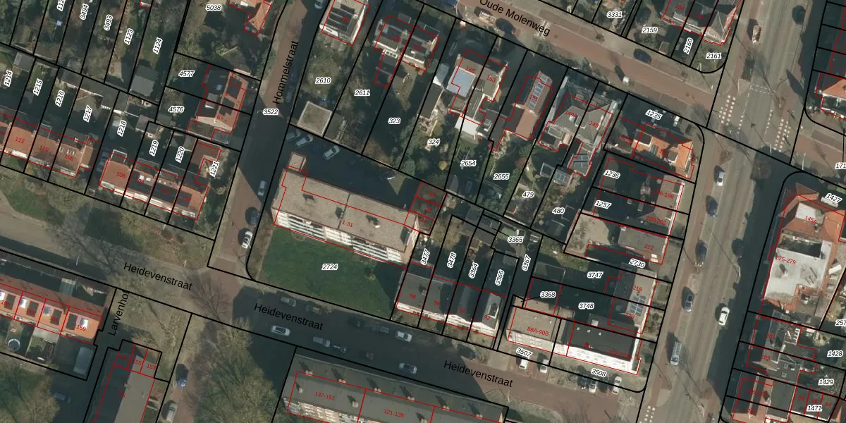 Het perceel waarop Hommelstraat 35 staat heeft een oppervlakte van 1340 m². Dit is een zeer groot perceel. De perceeloppervlakte wordt geregistreerd door het Kadaster. Gedetailleerde informatie over de maten van dit perceel kunt u vinden in het rapport Kadastrale kaart met maatvoering van Hommelstraat 35.