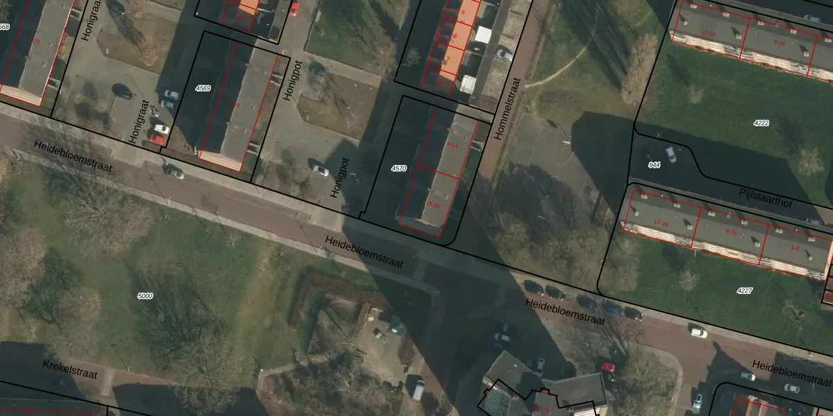 Het perceel waarop Honigpot 18 staat heeft een oppervlakte van 699 m². Dit is een groot perceel. De perceeloppervlakte wordt geregistreerd door het Kadaster. Gedetailleerde informatie over de maten van dit perceel kunt u vinden in het rapport Kadastrale kaart met maatvoering van Honigpot 18.
