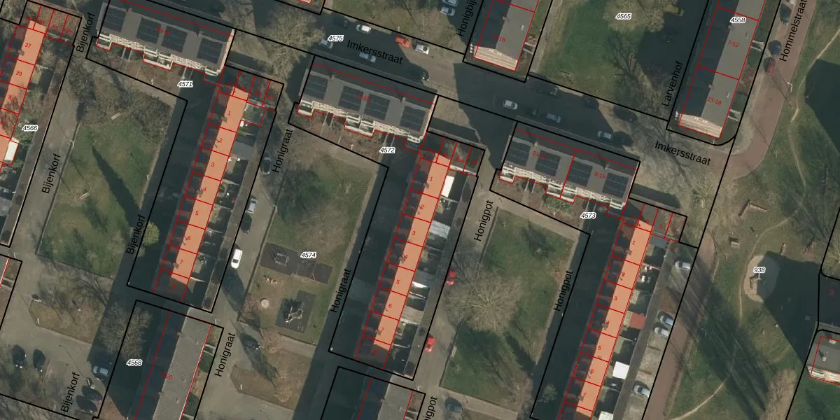 Het perceel waarop Honigraat 2 staat heeft een oppervlakte van 1712 m². Dit is een zeer groot perceel. De perceeloppervlakte wordt geregistreerd door het Kadaster. Gedetailleerde informatie over de maten van dit perceel kunt u vinden in het rapport Kadastrale kaart met maatvoering van Honigraat 2.