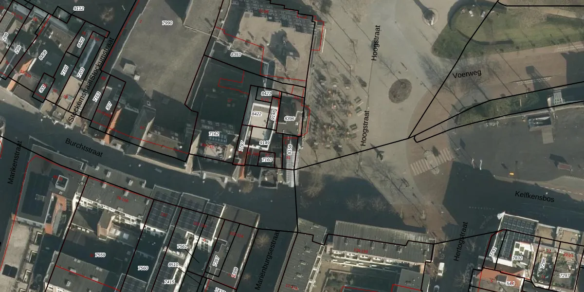Het perceel waarop Hoogstraat 1 staat heeft een oppervlakte van 47 m². Dit is een klein perceel. De perceeloppervlakte wordt geregistreerd door het Kadaster. Gedetailleerde informatie over de maten van dit perceel kunt u vinden in het rapport Kadastrale kaart met maatvoering van Hoogstraat 1.