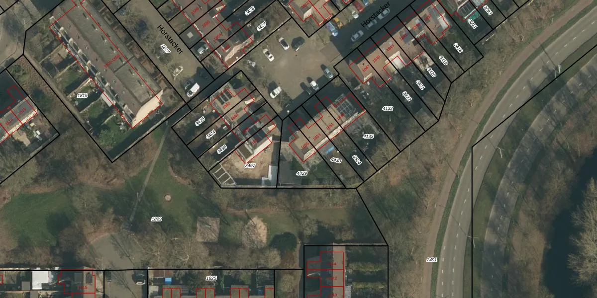 Gebruik de zoekbalk of klik op een perceel voor informatie over de adressen binnen dit perceel.