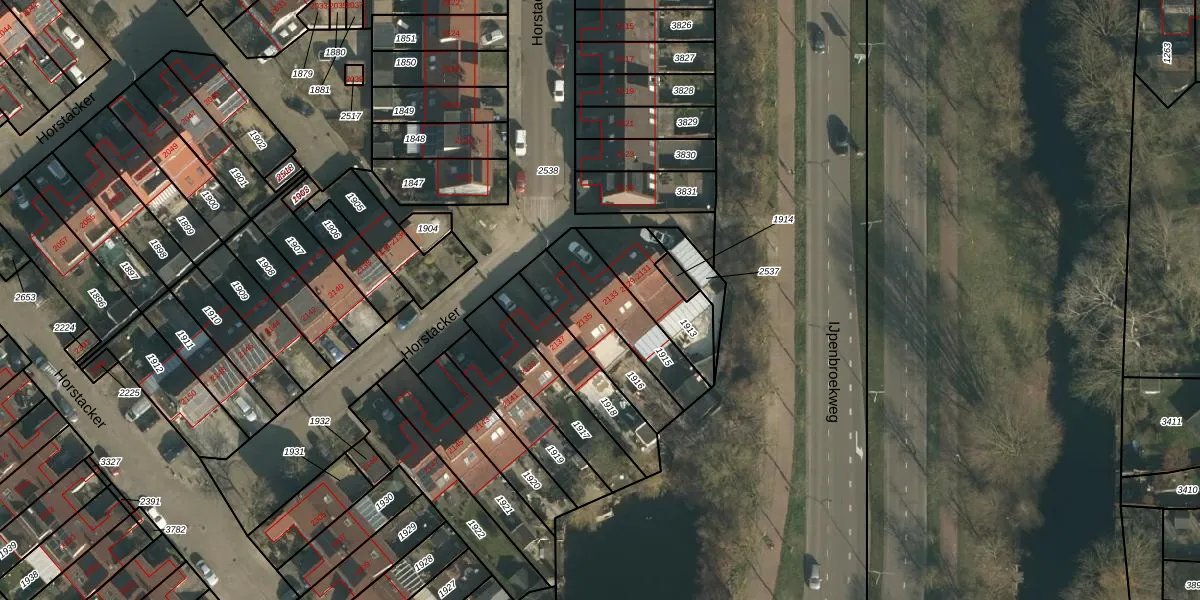 Gebruik de zoekbalk of klik op een perceel voor informatie over de adressen binnen dit perceel.
