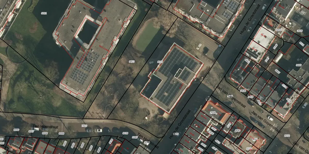 Het perceel waarop Hugo de Grootstraat 41-A staat heeft een oppervlakte van 2705 m². Dit is een zeer groot perceel. De perceeloppervlakte wordt geregistreerd door het Kadaster. Gedetailleerde informatie over de maten van dit perceel kunt u vinden in het rapport Kadastrale kaart met maatvoering van Hugo de Grootstraat 41-A.