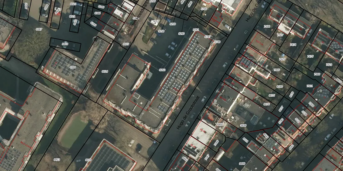 Het perceel waarop Hugo de Grootstraat 73 staat heeft een oppervlakte van 3130 m². Dit is een zeer groot perceel. De perceeloppervlakte wordt geregistreerd door het Kadaster. Gedetailleerde informatie over de maten van dit perceel kunt u vinden in het rapport Kadastrale kaart met maatvoering van Hugo de Grootstraat 73.