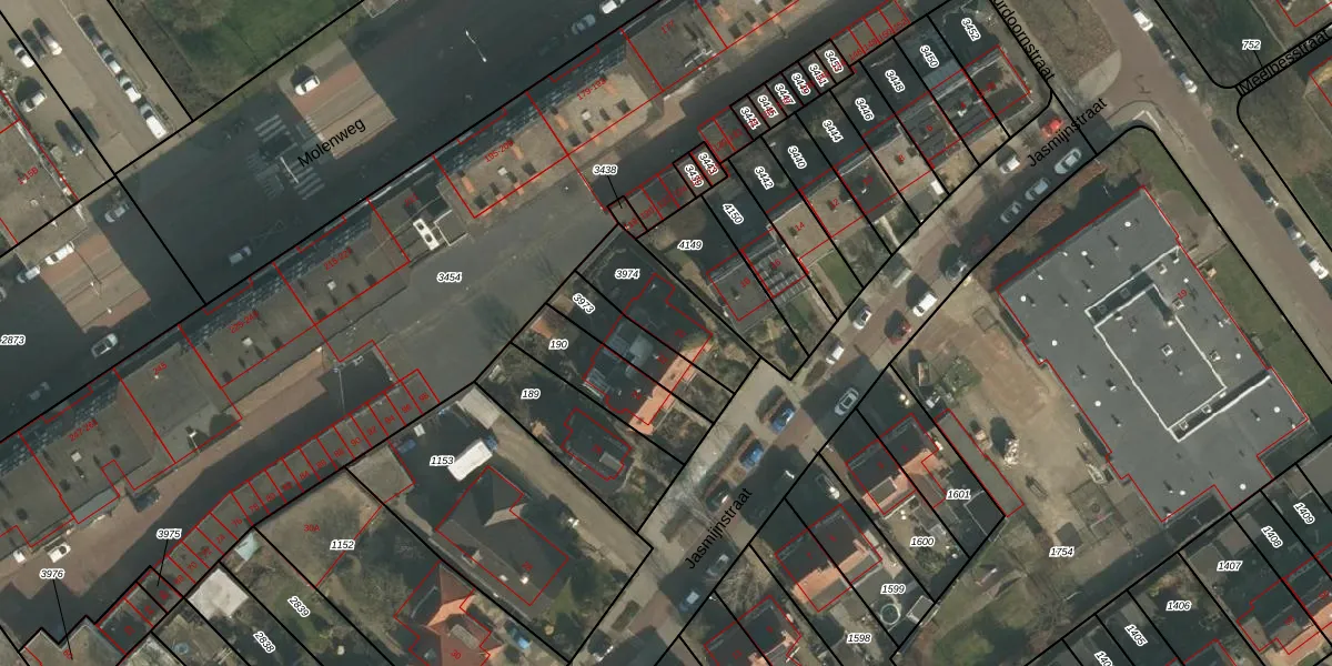 Het perceel waarop Jasmijnstraat 20 staat heeft een oppervlakte van 259 m². Dit is een middelgroot perceel. De perceeloppervlakte wordt geregistreerd door het Kadaster. Gedetailleerde informatie over de maten van dit perceel kunt u vinden in het rapport Kadastrale kaart met maatvoering van Jasmijnstraat 20.