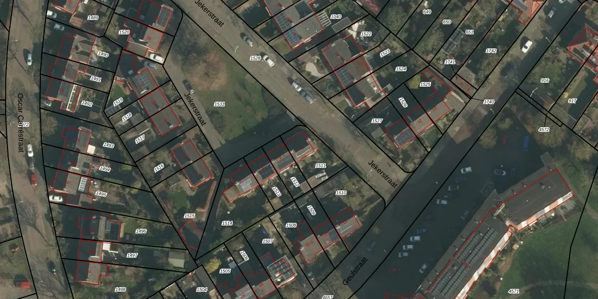 Het perceel waarop Jekerstraat 1 staat heeft een oppervlakte van 245 m². Dit is een middelgroot perceel. De perceeloppervlakte wordt geregistreerd door het Kadaster. Gedetailleerde informatie over de maten van dit perceel kunt u vinden in het rapport Kadastrale kaart met maatvoering van Jekerstraat 1.