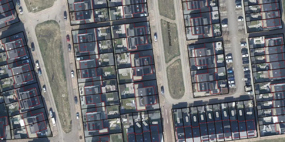 Het perceel waarop John Fordstraat 7 staat heeft een oppervlakte van 291 m². Dit is een middelgroot perceel. De perceeloppervlakte wordt geregistreerd door het Kadaster. Gedetailleerde informatie over de maten van dit perceel kunt u vinden in het rapport Kadastrale kaart met maatvoering van John Fordstraat 7.