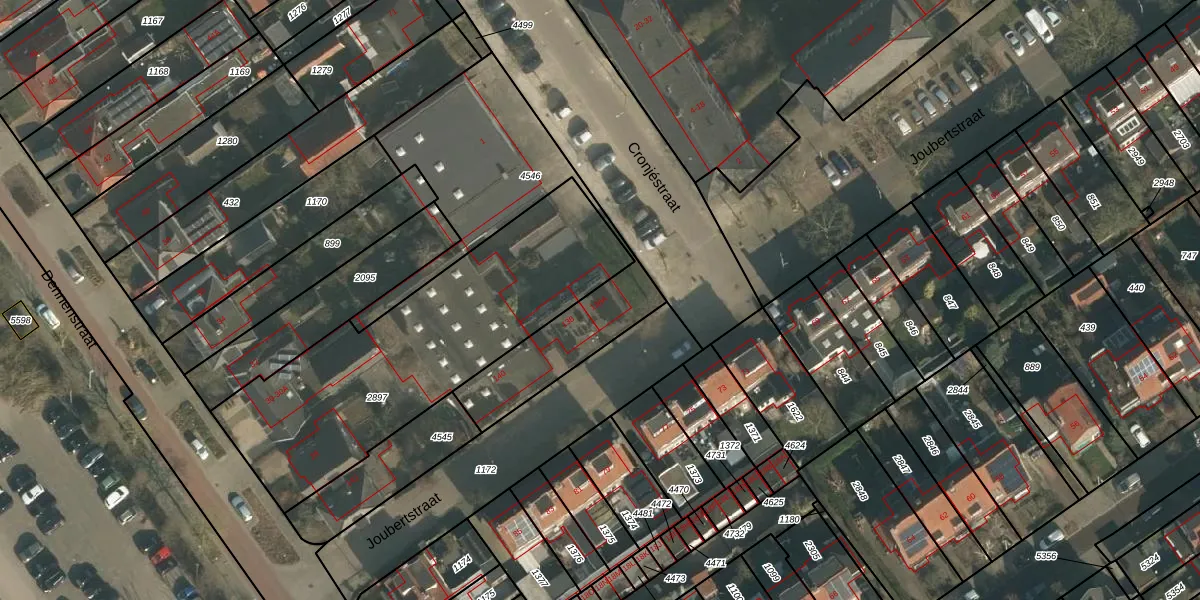 Het perceel waarop Joubertstraat 138-A staat heeft een oppervlakte van 955 m². Dit is een groot perceel. De perceeloppervlakte wordt geregistreerd door het Kadaster. Gedetailleerde informatie over de maten van dit perceel kunt u vinden in het rapport Kadastrale kaart met maatvoering van Joubertstraat 138-A.