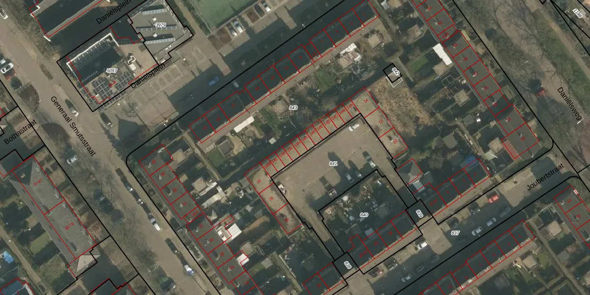 Het perceel waarop Joubertstraat 14-H staat heeft een oppervlakte van 8110 m². Dit is een zeer groot perceel. De perceeloppervlakte wordt geregistreerd door het Kadaster. Gedetailleerde informatie over de maten van dit perceel kunt u vinden in het rapport Kadastrale kaart met maatvoering van Joubertstraat 14-H.