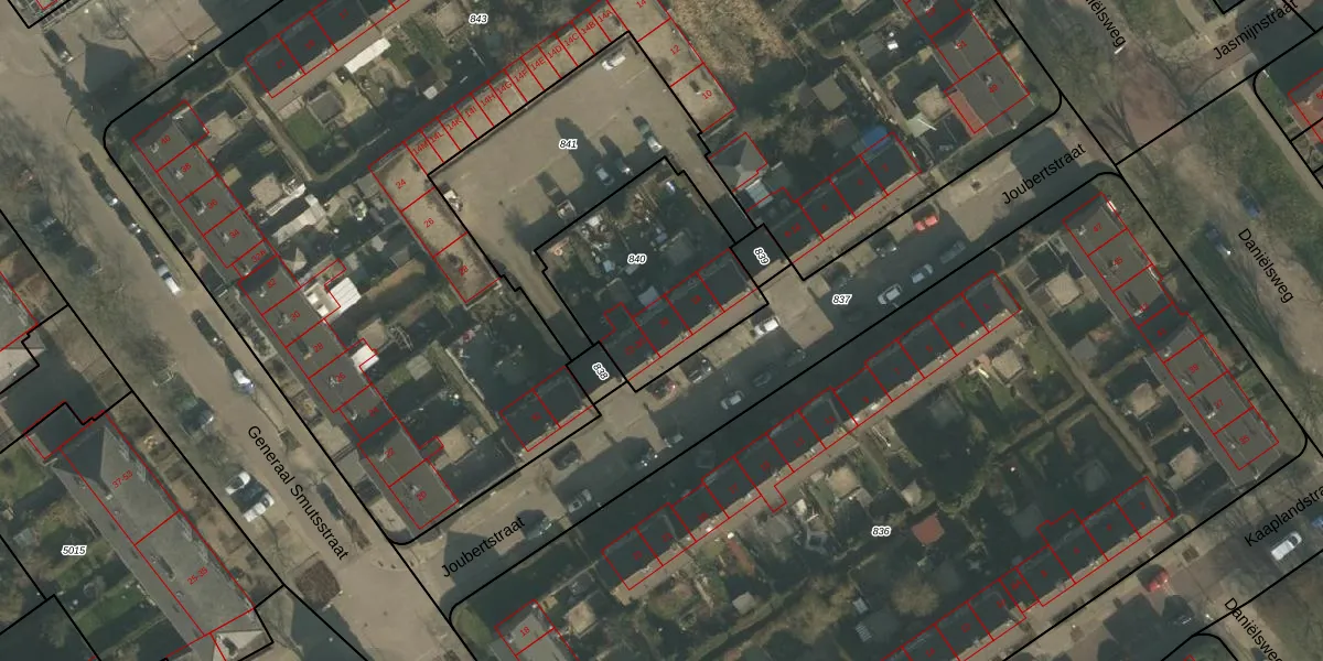 Het perceel waarop Joubertstraat 20 staat heeft een oppervlakte van 676 m². Dit is een groot perceel. De perceeloppervlakte wordt geregistreerd door het Kadaster. Gedetailleerde informatie over de maten van dit perceel kunt u vinden in het rapport Kadastrale kaart met maatvoering van Joubertstraat 20.