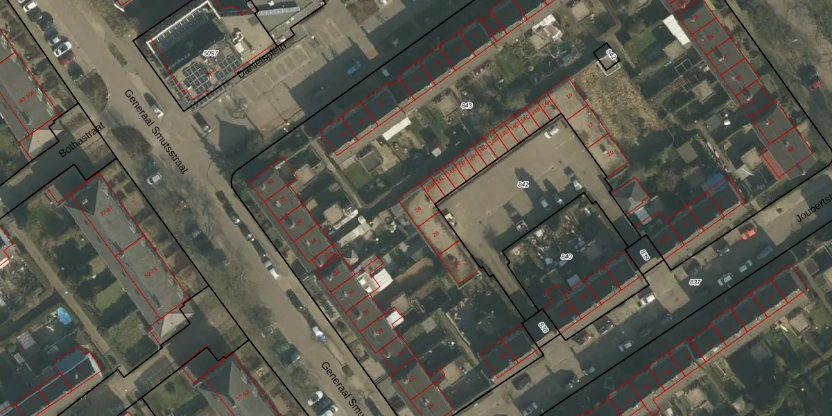 Het perceel waarop Joubertstraat 24 staat heeft een oppervlakte van 8110 m². Dit is een zeer groot perceel. De perceeloppervlakte wordt geregistreerd door het Kadaster. Gedetailleerde informatie over de maten van dit perceel kunt u vinden in het rapport Kadastrale kaart met maatvoering van Joubertstraat 24.