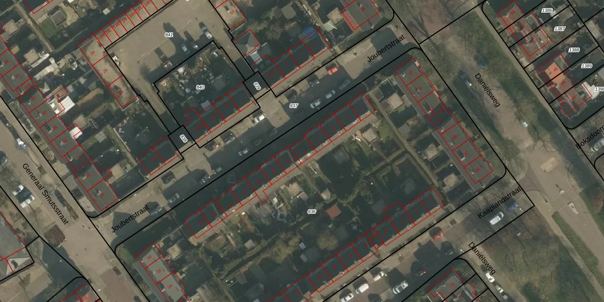 Het perceel waarop Joubertstraat 9 staat heeft een oppervlakte van 6490 m². Dit is een zeer groot perceel. De perceeloppervlakte wordt geregistreerd door het Kadaster. Gedetailleerde informatie over de maten van dit perceel kunt u vinden in het rapport Kadastrale kaart met maatvoering van Joubertstraat 9.