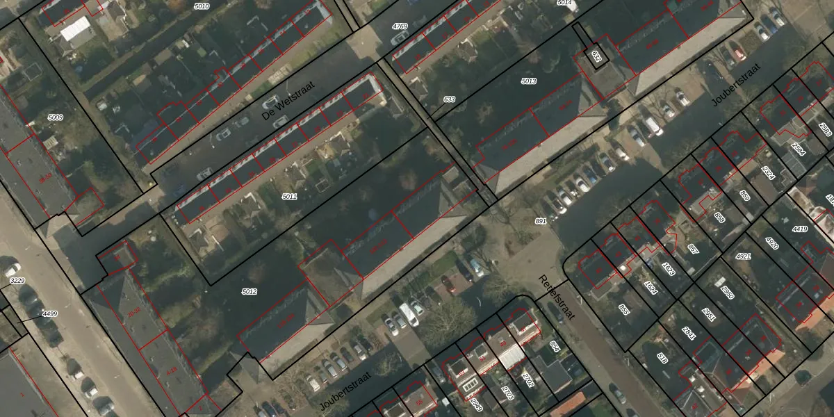 Het perceel waarop Joubertstraat 98 staat heeft een oppervlakte van 2845 m². Dit is een zeer groot perceel. De perceeloppervlakte wordt geregistreerd door het Kadaster. Gedetailleerde informatie over de maten van dit perceel kunt u vinden in het rapport Kadastrale kaart met maatvoering van Joubertstraat 98.