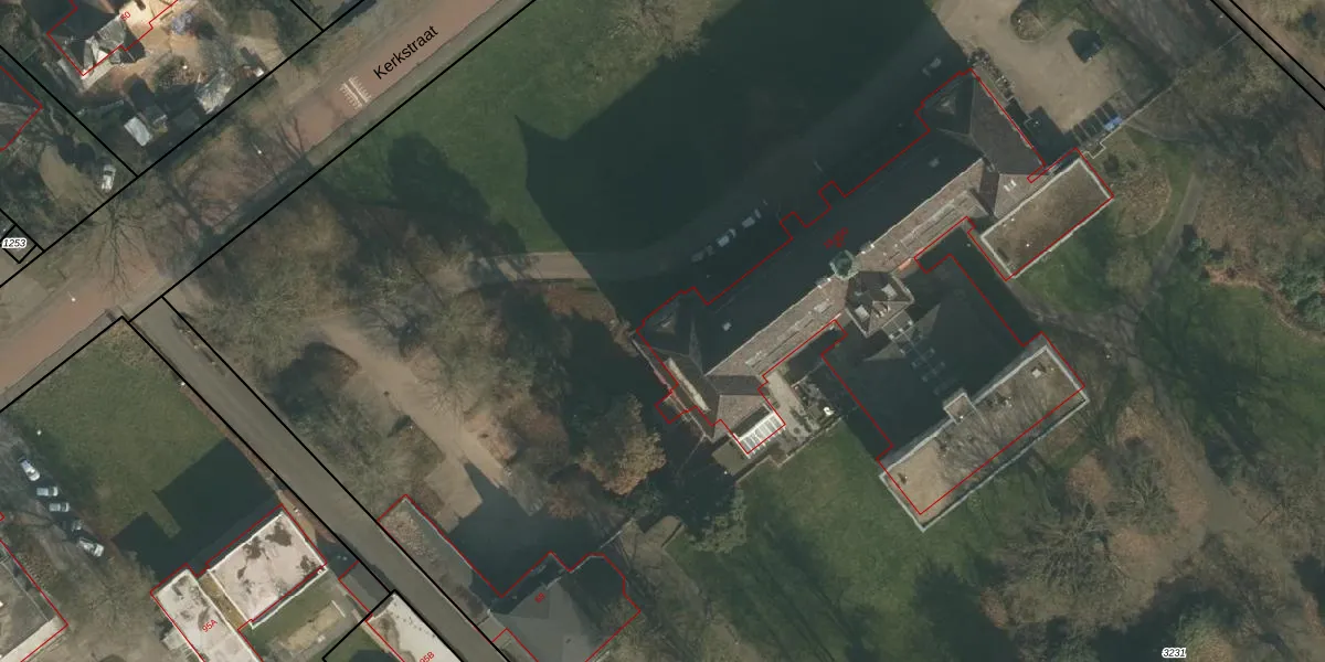 Het perceel waarop Kerkstraat 15-A staat heeft een oppervlakte van 3,9 ha. Dit is een zeer groot perceel. De perceeloppervlakte wordt geregistreerd door het Kadaster. Gedetailleerde informatie over de maten van dit perceel kunt u vinden in het rapport Kadastrale kaart met maatvoering van Kerkstraat 15-A.