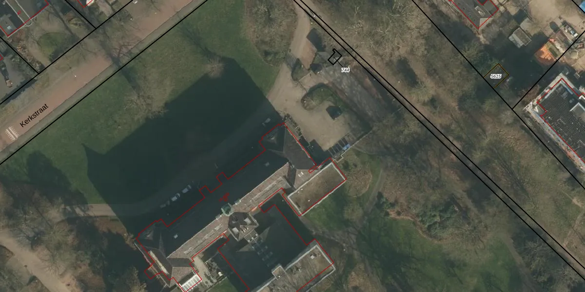Het perceel waarop Kerkstraat 19-B staat heeft een oppervlakte van 3,9 ha. Dit is een zeer groot perceel. De perceeloppervlakte wordt geregistreerd door het Kadaster. Gedetailleerde informatie over de maten van dit perceel kunt u vinden in het rapport Kadastrale kaart met maatvoering van Kerkstraat 19-B.