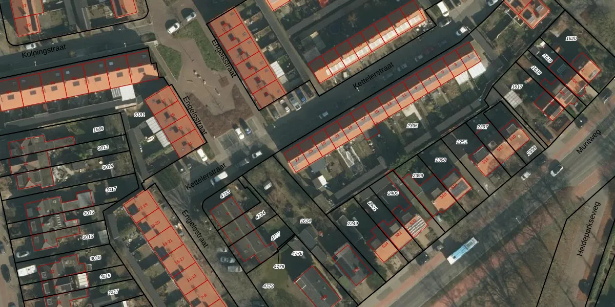 Het perceel waarop Kettelerstraat 25 staat heeft een oppervlakte van 2185 m². Dit is een zeer groot perceel. De perceeloppervlakte wordt geregistreerd door het Kadaster. Gedetailleerde informatie over de maten van dit perceel kunt u vinden in het rapport Kadastrale kaart met maatvoering van Kettelerstraat 25.