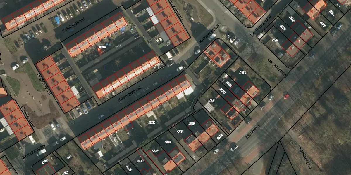 Het perceel waarop Kettelerstraat 3 staat heeft een oppervlakte van 2185 m². Dit is een zeer groot perceel. De perceeloppervlakte wordt geregistreerd door het Kadaster. Gedetailleerde informatie over de maten van dit perceel kunt u vinden in het rapport Kadastrale kaart met maatvoering van Kettelerstraat 3.