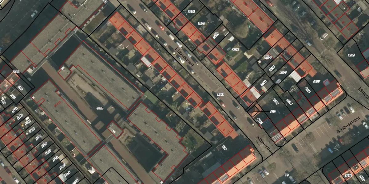 Het perceel waarop Klaverstraat 57 staat heeft een oppervlakte van 3635 m². Dit is een zeer groot perceel. De perceeloppervlakte wordt geregistreerd door het Kadaster. Gedetailleerde informatie over de maten van dit perceel kunt u vinden in het rapport Kadastrale kaart met maatvoering van Klaverstraat 57.