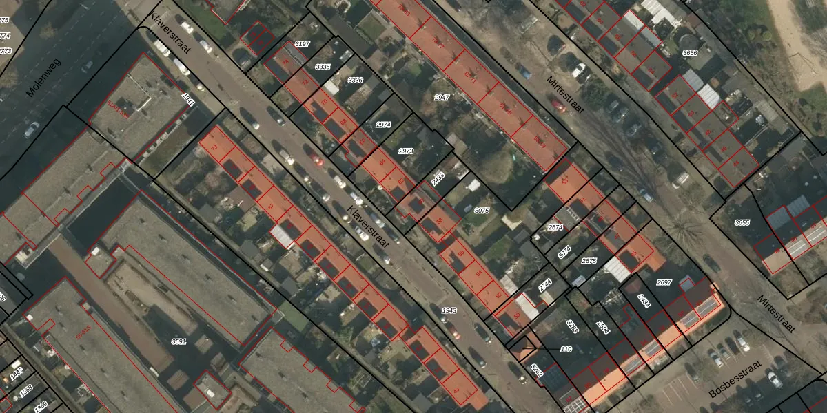 Het perceel waarop Klaverstraat 60 staat heeft een oppervlakte van 150 m². Dit is een middelgroot perceel. De perceeloppervlakte wordt geregistreerd door het Kadaster. Gedetailleerde informatie over de maten van dit perceel kunt u vinden in het rapport Kadastrale kaart met maatvoering van Klaverstraat 60.