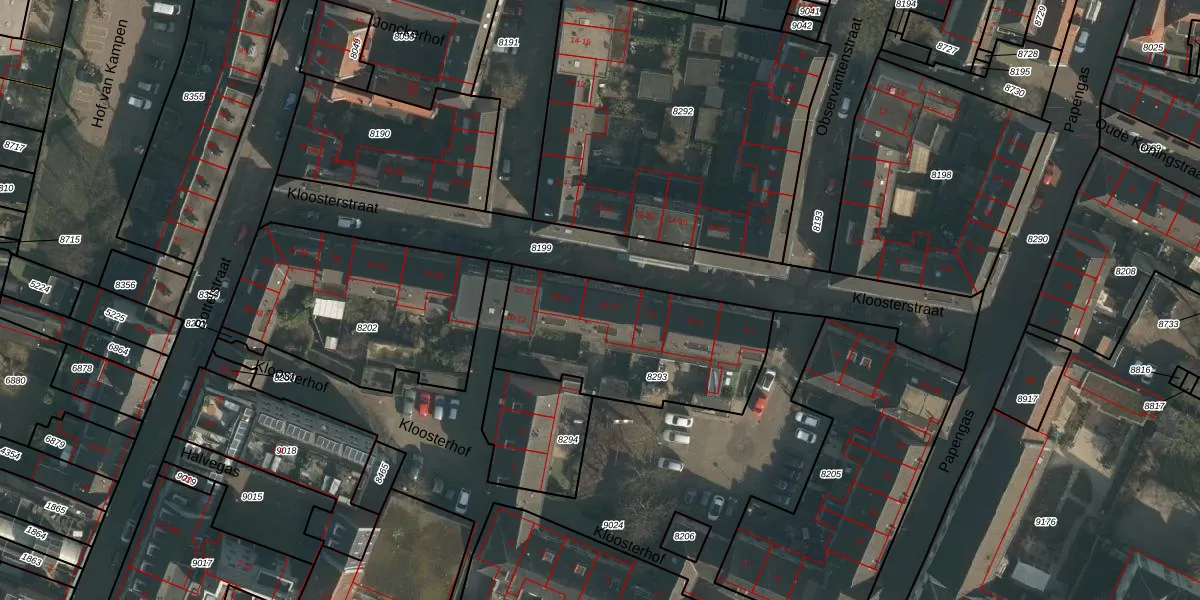 Kloosterstraat 15 is gelegen op kadastraal perceel NMG00C8293. Deze kadastrale aanduiding is uniek en wordt gebruikt door het Kadaster om eigendomsrechten en andere zakelijke rechten vast te leggen. Het perceel maakt onderdeel uit van de kadastrale gemeente Nijmegen.