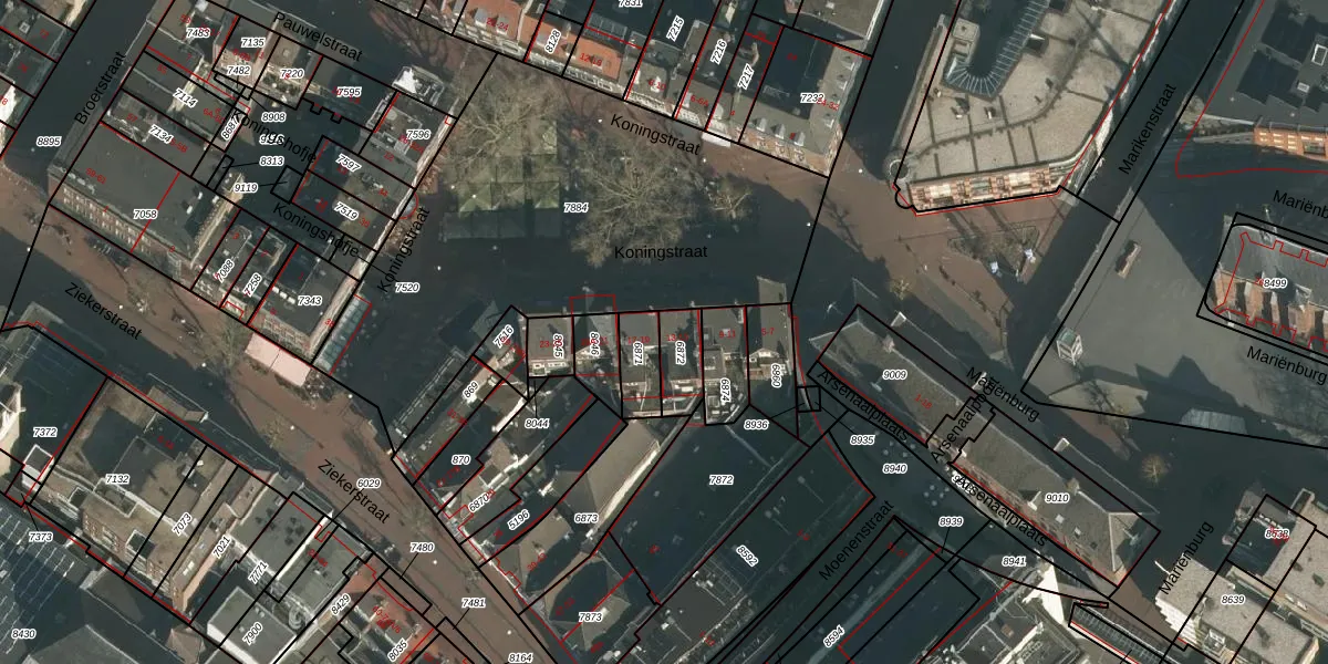 Koningstraat 13 is gelegen op kadastraal perceel NMG00C6872. Deze kadastrale aanduiding is uniek en wordt gebruikt door het Kadaster om eigendomsrechten en andere zakelijke rechten vast te leggen. Het perceel maakt onderdeel uit van de kadastrale gemeente Nijmegen.