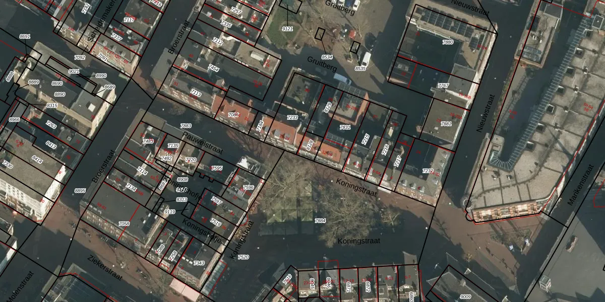 Het perceel waarop Koningstraat 16 staat heeft een oppervlakte van 54 m². Dit is een klein perceel. De perceeloppervlakte wordt geregistreerd door het Kadaster. Gedetailleerde informatie over de maten van dit perceel kunt u vinden in het rapport Kadastrale kaart met maatvoering van Koningstraat 16.