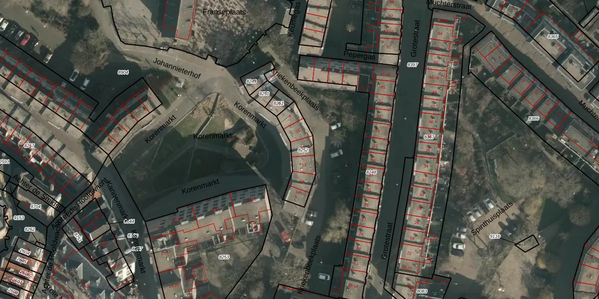 Korenmarkt 11 is gelegen op kadastraal perceel NMG00C8252. Deze kadastrale aanduiding is uniek en wordt gebruikt door het Kadaster om eigendomsrechten en andere zakelijke rechten vast te leggen. Het perceel maakt onderdeel uit van de kadastrale gemeente Nijmegen.