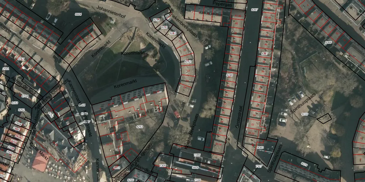 Korenmarkt 14 is gelegen op kadastraal perceel NMG00C8252. Deze kadastrale aanduiding is uniek en wordt gebruikt door het Kadaster om eigendomsrechten en andere zakelijke rechten vast te leggen. Het perceel maakt onderdeel uit van de kadastrale gemeente Nijmegen.