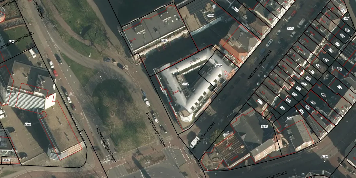 Het perceel waarop Kronenburgersingel 4-C staat heeft een oppervlakte van 955 m². Dit is een groot perceel. De perceeloppervlakte wordt geregistreerd door het Kadaster. Gedetailleerde informatie over de maten van dit perceel kunt u vinden in het rapport Kadastrale kaart met maatvoering van Kronenburgersingel 4-C.