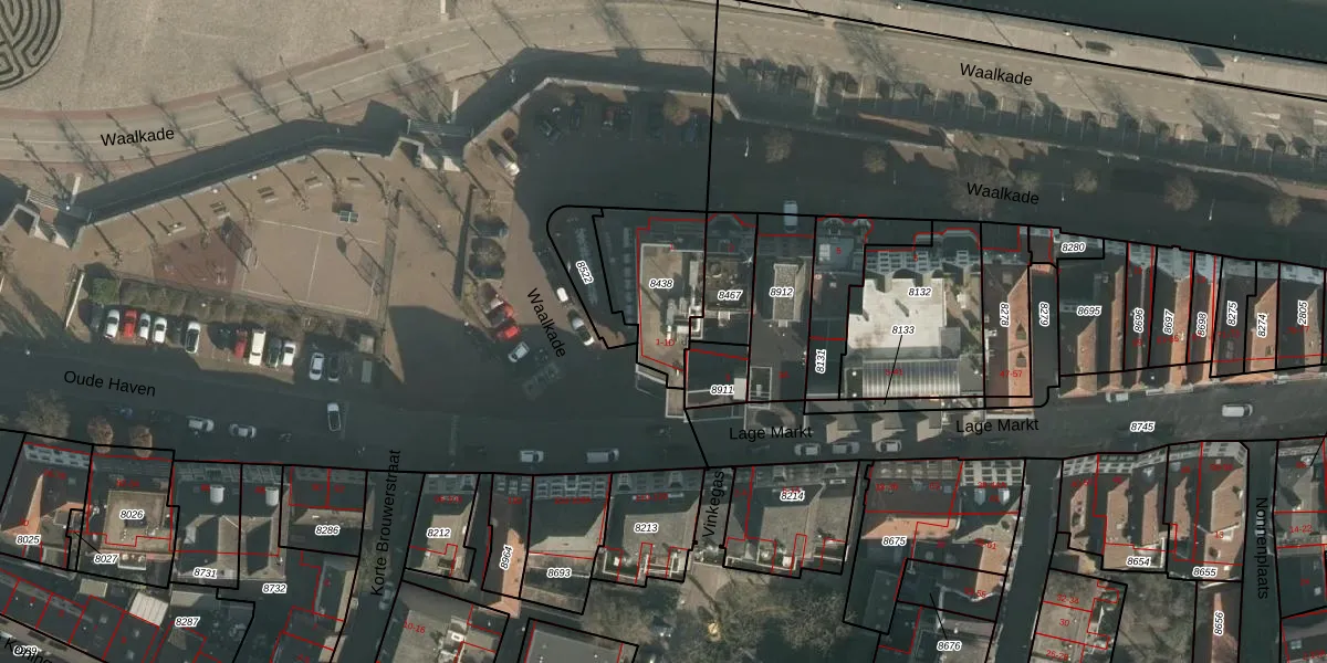 Lage Markt 1 is gelegen op kadastraal perceel NMG00C8438. Deze kadastrale aanduiding is uniek en wordt gebruikt door het Kadaster om eigendomsrechten en andere zakelijke rechten vast te leggen. Het perceel maakt onderdeel uit van de kadastrale gemeente Nijmegen.