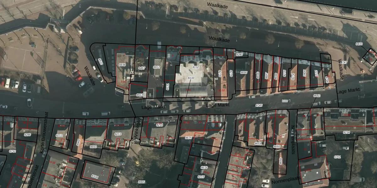 Lage Markt 21 is gelegen op kadastraal perceel NMG00C8132. Deze kadastrale aanduiding is uniek en wordt gebruikt door het Kadaster om eigendomsrechten en andere zakelijke rechten vast te leggen. Het perceel maakt onderdeel uit van de kadastrale gemeente Nijmegen.