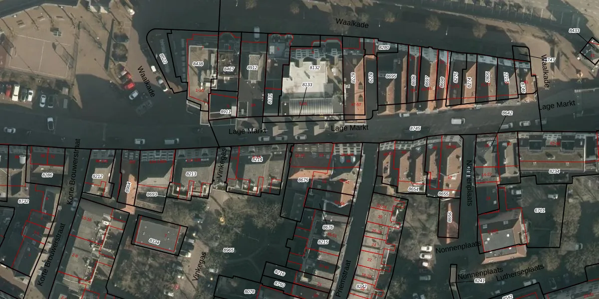 Lage Markt 22 is gelegen op kadastraal perceel NMG00C8675. Deze kadastrale aanduiding is uniek en wordt gebruikt door het Kadaster om eigendomsrechten en andere zakelijke rechten vast te leggen. Het perceel maakt onderdeel uit van de kadastrale gemeente Nijmegen.