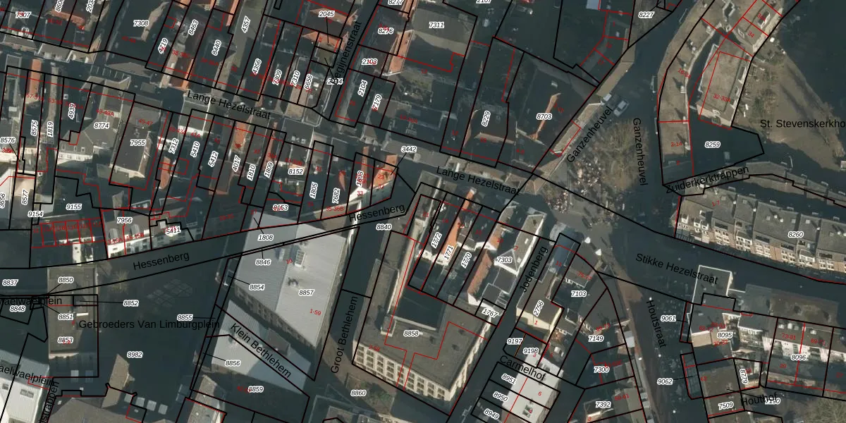 Lange Hezelstraat 21 is gelegen op kadastraal perceel NMG00C8858. Deze kadastrale aanduiding is uniek en wordt gebruikt door het Kadaster om eigendomsrechten en andere zakelijke rechten vast te leggen. Het perceel maakt onderdeel uit van de kadastrale gemeente Nijmegen.