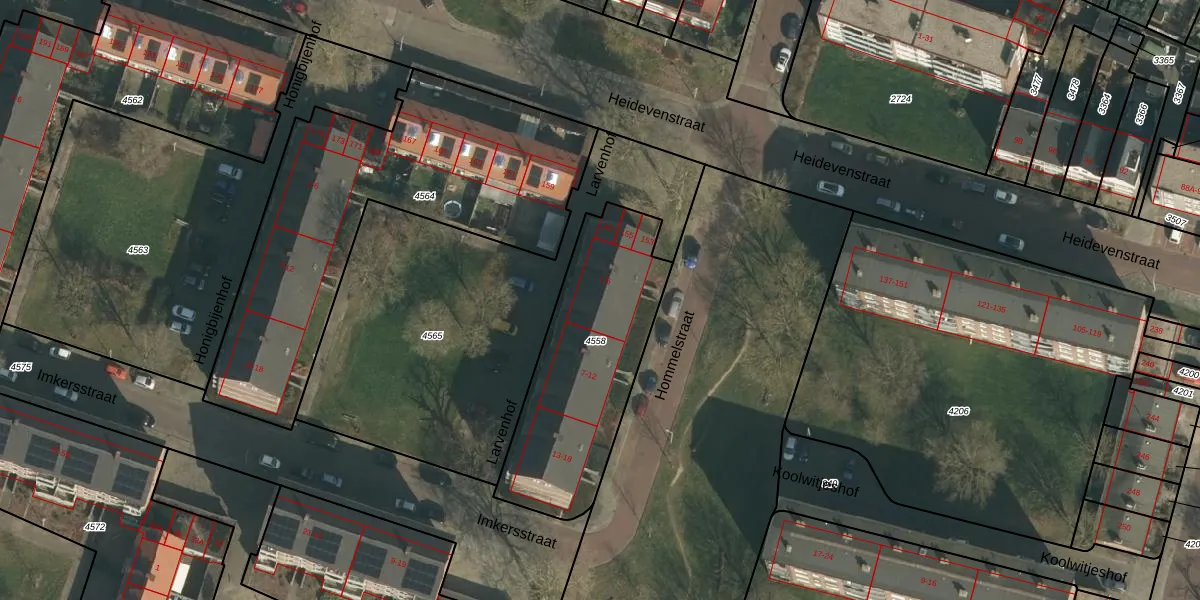 Het perceel waarop Larvenhof 2 staat heeft een oppervlakte van 796 m². Dit is een groot perceel. De perceeloppervlakte wordt geregistreerd door het Kadaster. Gedetailleerde informatie over de maten van dit perceel kunt u vinden in het rapport Kadastrale kaart met maatvoering van Larvenhof 2.