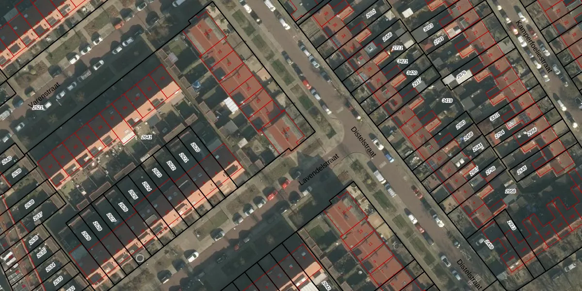 Het perceel waarop Lavendelstraat 2 staat heeft een oppervlakte van 3566 m². Dit is een zeer groot perceel. De perceeloppervlakte wordt geregistreerd door het Kadaster. Gedetailleerde informatie over de maten van dit perceel kunt u vinden in het rapport Kadastrale kaart met maatvoering van Lavendelstraat 2.