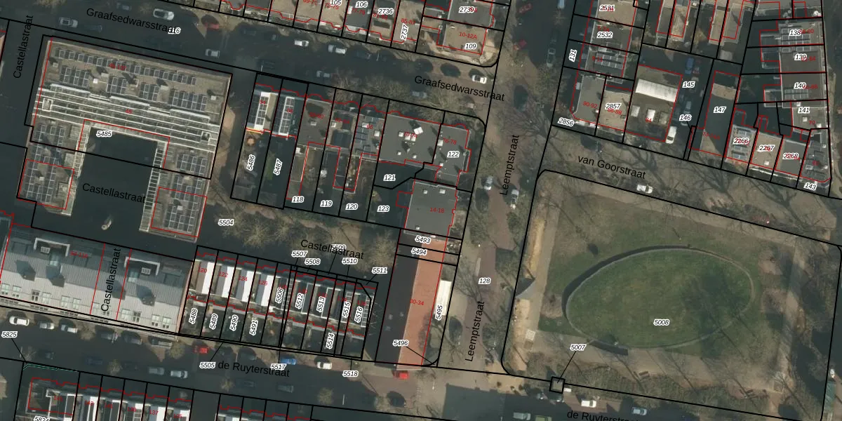 Het perceel waarop Leemptstraat 16 staat heeft een oppervlakte van 259 m². Dit is een middelgroot perceel. De perceeloppervlakte wordt geregistreerd door het Kadaster. Gedetailleerde informatie over de maten van dit perceel kunt u vinden in het rapport Kadastrale kaart met maatvoering van Leemptstraat 16.