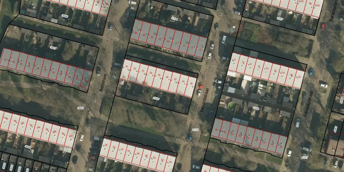 Het perceel waarop Lenardstraat 32 staat heeft een oppervlakte van 1070 m². Dit is een zeer groot perceel. De perceeloppervlakte wordt geregistreerd door het Kadaster. Gedetailleerde informatie over de maten van dit perceel kunt u vinden in het rapport Kadastrale kaart met maatvoering van Lenardstraat 32.