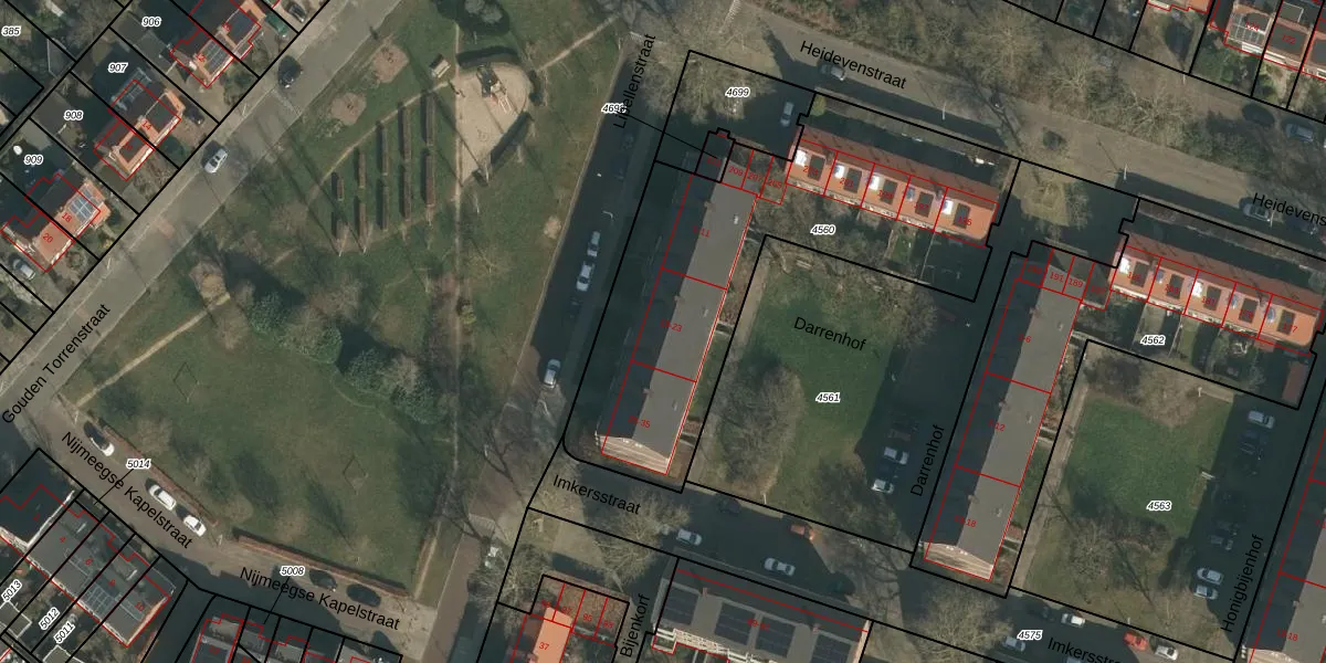 Het adres is gelegen op perceel 4560 in de sectie L en de kadastrale gemeente Hatert. De kadastrale aanduiding is aldus HTT02-L-4560. Het perceel is met 1711 m² relatief groot. Het gemiddelde ligt in de kadastrale gemeente Hatert op 908,98 m². Het kleinste perceel in de kadastrale gemeente is 0 m² groot. De grootste perceeloppervlakte is 66,9 ha. Op het perceel zijn 26 adressen aanwezig. De huidige grenzen van het perceel zijn digitaal in de Basisregistratie Kadaster (BRK) geregistreerd op 28-01-2003.