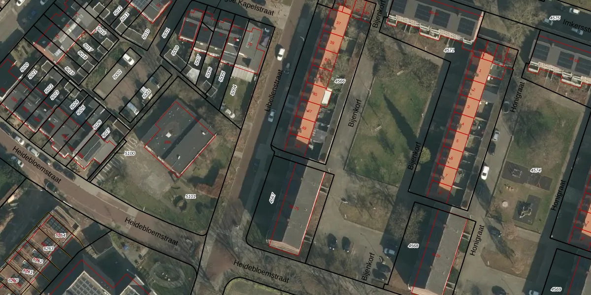 Libellenstraat 51 is gelegen op kadastraal perceel HTT02L4566. Deze kadastrale aanduiding is uniek en wordt gebruikt door het Kadaster om eigendomsrechten en andere zakelijke rechten vast te leggen. Het perceel maakt onderdeel uit van de kadastrale gemeente Hatert.