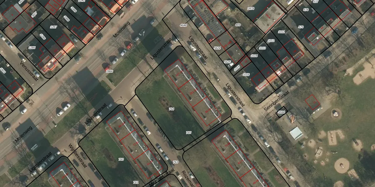 Het perceel waarop Ligusterstraat 105 staat heeft een oppervlakte van 1550 m². Dit is een zeer groot perceel. De perceeloppervlakte wordt geregistreerd door het Kadaster. Gedetailleerde informatie over de maten van dit perceel kunt u vinden in het rapport Kadastrale kaart met maatvoering van Ligusterstraat 105.