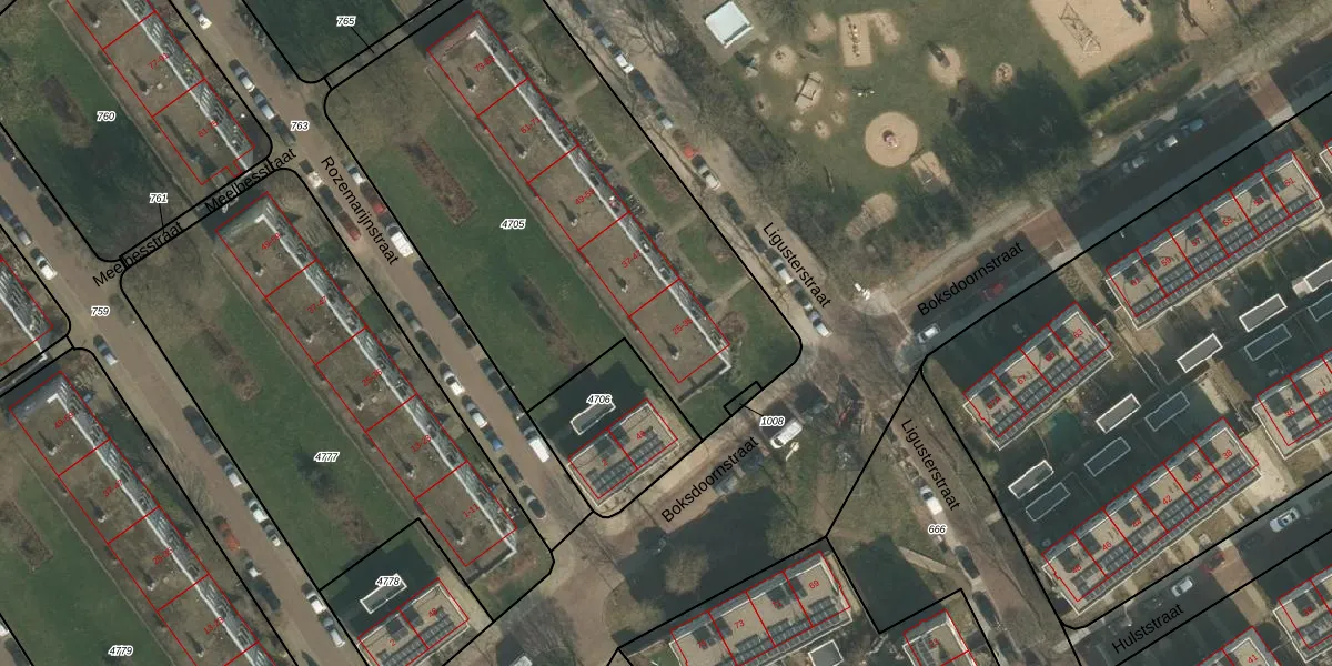Ligusterstraat 29 is gelegen op kadastraal perceel NBH00H4705. Deze kadastrale aanduiding is uniek en wordt gebruikt door het Kadaster om eigendomsrechten en andere zakelijke rechten vast te leggen. Het perceel maakt onderdeel uit van de kadastrale gemeente Neerbosch.