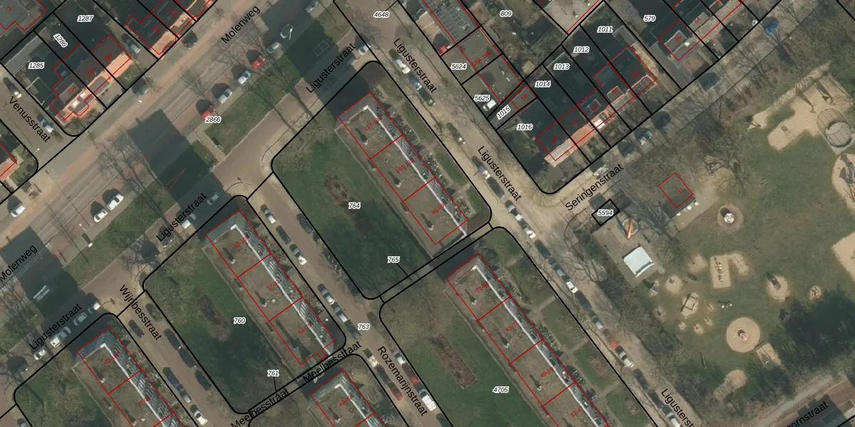 Het perceel waarop Ligusterstraat 95 staat heeft een oppervlakte van 1550 m². Dit is een zeer groot perceel. De perceeloppervlakte wordt geregistreerd door het Kadaster. Gedetailleerde informatie over de maten van dit perceel kunt u vinden in het rapport Kadastrale kaart met maatvoering van Ligusterstraat 95.