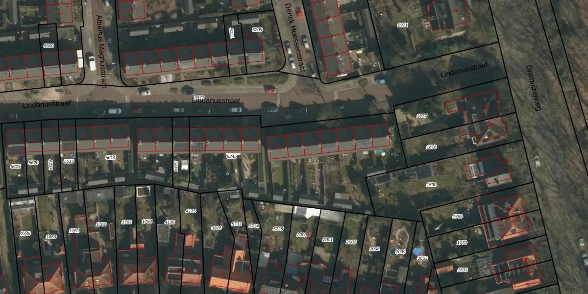 Het perceel waarop Lindanusstraat 11 staat heeft een oppervlakte van 1945 m². Dit is een zeer groot perceel. De perceeloppervlakte wordt geregistreerd door het Kadaster. Gedetailleerde informatie over de maten van dit perceel kunt u vinden in het rapport Kadastrale kaart met maatvoering van Lindanusstraat 11.