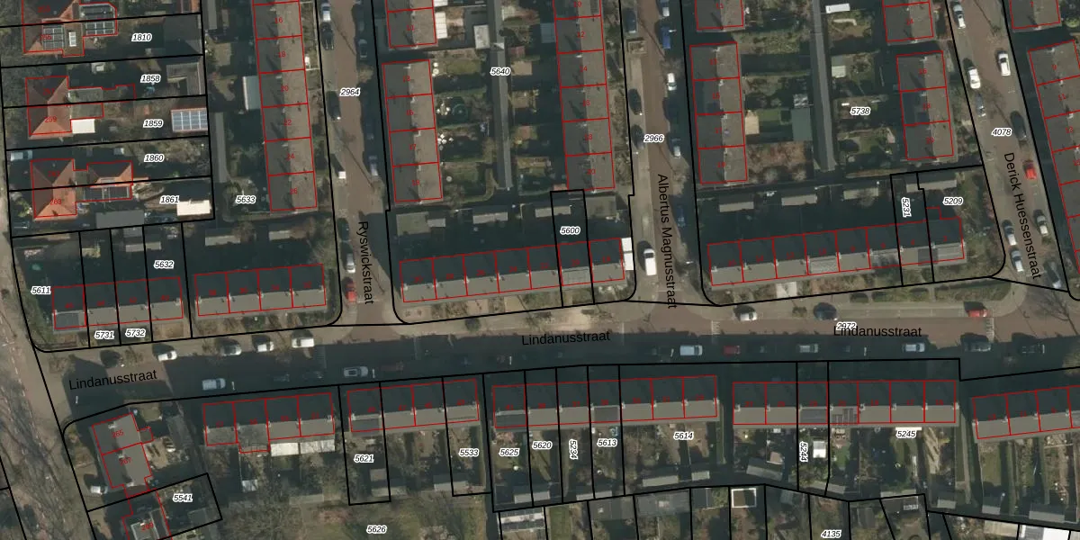 Het perceel waarop Lindanusstraat 22 staat heeft een oppervlakte van 4299 m². Dit is een zeer groot perceel. De perceeloppervlakte wordt geregistreerd door het Kadaster. Gedetailleerde informatie over de maten van dit perceel kunt u vinden in het rapport Kadastrale kaart met maatvoering van Lindanusstraat 22.
