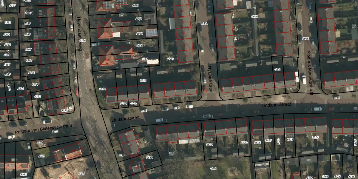 Lindanusstraat 34 is gelegen op kadastraal perceel HTT02B5633. Deze kadastrale aanduiding is uniek en wordt gebruikt door het Kadaster om eigendomsrechten en andere zakelijke rechten vast te leggen. Het perceel maakt onderdeel uit van de kadastrale gemeente Hatert.