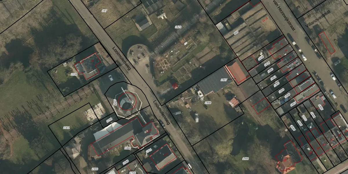 Het perceel waarop Looimolenweg 20 staat heeft een oppervlakte van 3988 m². Dit is een zeer groot perceel. De perceeloppervlakte wordt geregistreerd door het Kadaster. Gedetailleerde informatie over de maten van dit perceel kunt u vinden in het rapport Kadastrale kaart met maatvoering van Looimolenweg 20.
