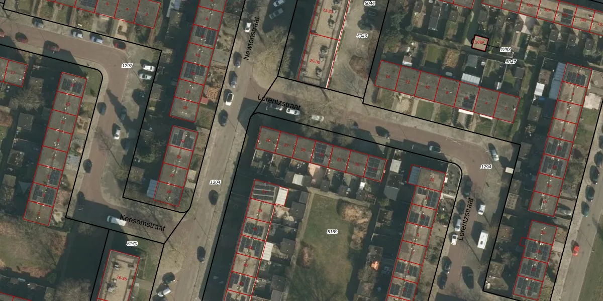 Het perceel waarop Lorentzstraat 25 staat heeft een oppervlakte van 7327 m². Dit is een zeer groot perceel. De perceeloppervlakte wordt geregistreerd door het Kadaster. Gedetailleerde informatie over de maten van dit perceel kunt u vinden in het rapport Kadastrale kaart met maatvoering van Lorentzstraat 25.